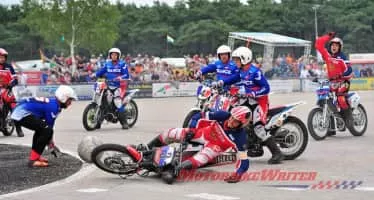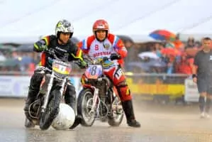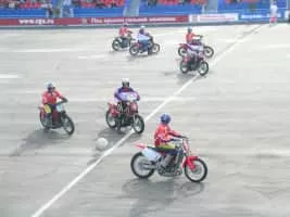 Motoball is similar to football, but all players are riding motorcycles, and the ball is much bigger. Motorcycle Polo first began as an officially organized sport in the mid-1930s. In France, there are organized motoball competitions, and the sport was included in the inaugural Goodwill Games.