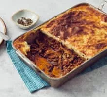 | Main ingredients | Eggplant and/or potatoes, minced meat |