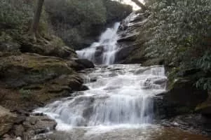 Mud Creek Falls is a waterfall located in the small resort city of Sky Valley, Georgia in Rabun County, Georgia that cascades for over 100 feet eventually into Estatoah Falls near Dillard, Georgia. No hiking is required to reach the falls.