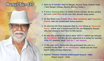 Mugur Sundar is a dance choreographer in South Indian cinema.
