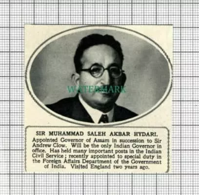 Sir Muhammad Saleh Akbar Hydari KCIE, CSI was an Indian civil servant and politician. He was the last British-appointed Governor of the province of Assam, who also continued in the role after Indian independence.