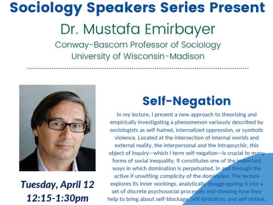 Mustafa Emirbayer is an American sociologist and professor of sociology at University of Wisconsin-Madison. He is known for his theoretical contributions to social network analysis, and is "one of the most vocal advocates of the relational approach in the social sciences."