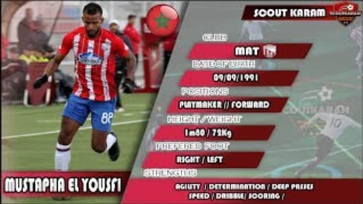 Name in home country: مصطفى اليوسفي Date of birth: Sep 9, 1991 Place of birth: Khenifra Age: 32 Height: 1,84 m Citizenship: Morocco Position: Attack - Centre-Forward Foot: right Current club: Al Sadaqa SC (Libya) Joined: Feb 16, 2023 Contract expires: -