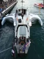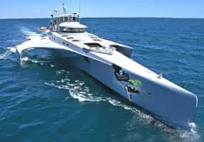 MV Brigitte Bardot is a unique high-tech 35 m stabilized monohull twin diesel engine powered vessel designed by Nigel Irens. Construction of the vessel began in June 1997 and she was launched on 16 March 1998. The official naming ceremony took place on 3 April 1998 in London's West India Dock.