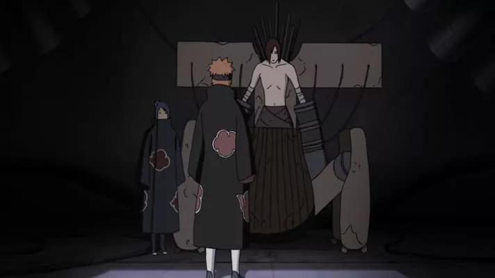 Nagato, known primarily under the alias of Pain, is a fictional character in the manga and anime series Naruto created by Masashi Kishimoto. Nagato is the figurehead leader of the Akatsuki who wishes to capture the tailed beasts sealed into various people around the shinobi world.