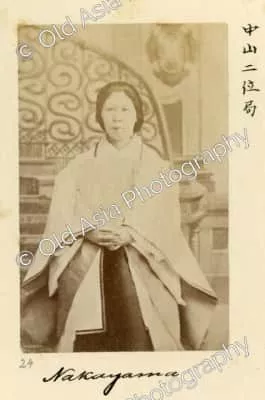 Nakayama Yoshiko was a Japanese lady-in-waiting in the court of the Imperial House of Japan. She was a favourite concubine of Emperor Kōmei and the mother of Emperor Meiji.