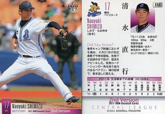 Naoyuki Shimizu, nicknamed "Nao", is a former professional baseball player from Kyoto, Japan. He is a starting pitcher for the Yokohama DeNA BayStars.