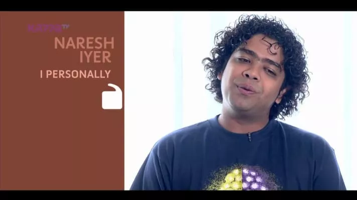 Naresh Iyer is an Indian playback singer. Born Mumbai, Iyer is fluent in Tamil, Malayalam, Kannada, Hindi and Marathi. Naresh Iyer has rendered 2000 film songs in several Indian languages and has several chart hits to his credit. His rendition of "Roobaroo" from the movie Rang De Basanti composed by A. R.