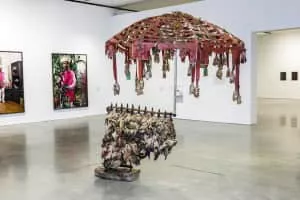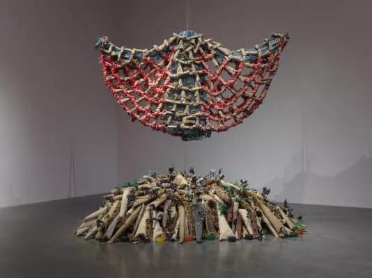 Nari Ward is an American artist based in New York City. He is a distinguished professor and head of studio art at Hunter College. His work is often composed of found objects from his neighborhood, and "address issues related to consumer culture, poverty, and race".
