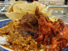 Nasi kandar is a popular northern Malaysian dish, which originates from Penang. It was popularized by Indian Muslim traders from India. It is a meal of steamed rice which can be plain or mildly flavored, and served with a variety of curries and side dishes.