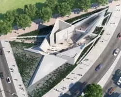 The National Holocaust Monument is a Holocaust memorial in Ottawa, Ontario, across from the Canadian War Museum at the northeast corner of Wellington and Booth Streets, and about 1. 5 km away from Parliament Hill. The memorial has been designed by Daniel Libeskind.