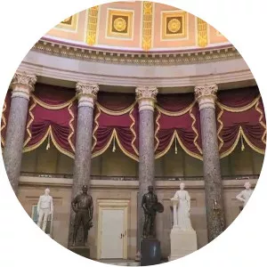 National Statuary Hall is a chamber in the United States Capitol devoted to sculptures of prominent Americans. The hall, also known as the Old Hall of the House, is a large, two-story, semicircular room with a second story gallery along the curved perimeter. It is located immediately south of the Rotunda.