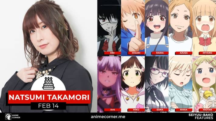 Natsumi Takamori is a Japanese voice actress affiliated with Pro-Fit. Some of her major roles are Mei Misaki in Another, Miku Maekawa in The Idolmaster Cinderella Girls, Nikka Edvardine Katajainen in ...
