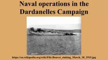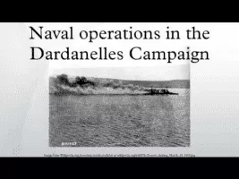 The naval operations in the Dardanelles campaign took place against the Ottoman Empire during the First World War. Ships of the Royal Navy, French Marine nationale, Imperial Russian Navy and the Royal Australian Navy, attempted to force the defences of the Dardanelles Straits.