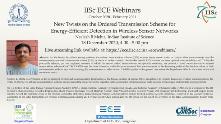 Neelesh B. Mehta is an Indian communications engineer, inventor and a professor at the Department of Electrical and Communications Engineering of the Indian Institute of Science who studies wireless networks.