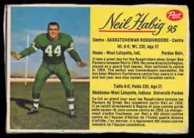 Neil Habig was an offensive lineman and linebacker for the Saskatchewan Roughriders in the Canadian Football League from 1958 to 1964 and was a dominant player at his position of center.