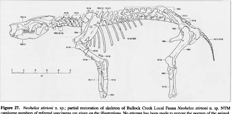 Neohelos is an extinct diprotodontid marsupial, that lived from the early to middle-Miocene. There are four species assigned to this genus, Neohelos tirarensis, the type species, N. stirtoni, N. solus and N. davidridei.