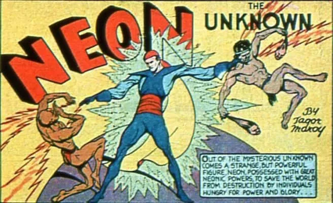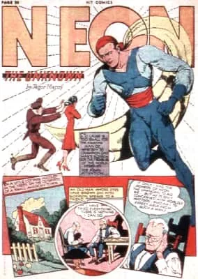 Neon the Unknown is a fictional superhero from the Golden Age of Comic Books created by Jerry Iger for Quality Comics. Neon first appeared in a story penciled and inked by Lou Fine in Hit Comics #1 and was featured on the cover. His stories ran in issues 1–17.