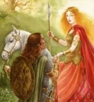 Niamh or Niam, in the Irish Fenian Cycle, is the lover or spouse of Oisín, son of Fionn mac Cumhail. In the story of Golden-headed Niamh or Golden-haired Niamh, an otherworldly woman who carried away Oisín to live with her in her domain of Tír na nÓg, the Land of Youth. She had two sons and a daughter with Oisín.