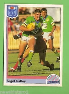 Nigel Gaffey is an Australian former rugby league footballer who played in the 1990s and 2000s. He played at club level for the Canberra Raiders, the Sydney City Roosters, the South Queensland Crushers and the Penrith Panthers, as a second-row and lock. He is the son of former Cronulla Sharks player Len Gaffey.