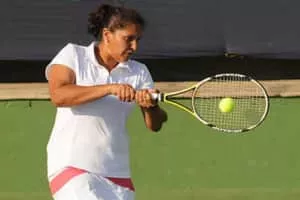 Nirupama Sanjeev is an Indian former professional tennis player. In the 1998 Australian Open, Sanjeev became the second Indian woman in the Open era to feature in a major main draw, and the first to win a major match, defeating Gloria Pizzichini.