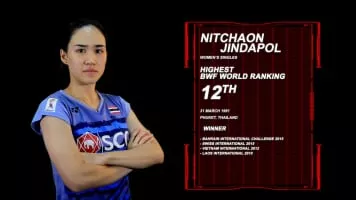 Nitchaon Jindapol is a Thai badminton singles player. She was a member of the national women's team which finished as runners-up at the 2010 Asian Games. She graduated at the Sripatum University with a Bachelor of Business Administration.