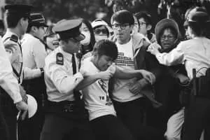 Two protest movements in Hong Kong are chronicled: the pro-China demonstrations against British colonial rule in 1967 on Chung Ying Street and the pro-democracy Umbrella Movement that began in 2014. An old man watches as history repeats itself.
