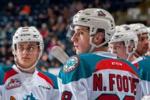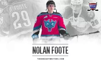 Nolan Foote is an American-born Canadian professional ice hockey forward for the Utica Comets of the American Hockey League as a prospect to the New Jersey Devils of the National Hockey League. He was drafted 27th overall by the Tampa Bay Lightning in the first round of the 2019 NHL Entry Draft.
