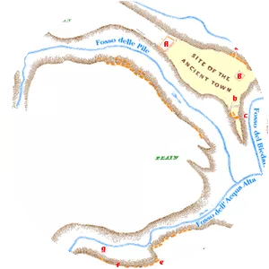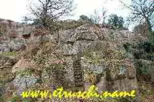Norchia is an ancient Etruscan city with an adjacent necropolis, near Vetralla in Italy. The site is along the Via Clodia, and is not far from the more well known Etruscan town of Tarquinia.