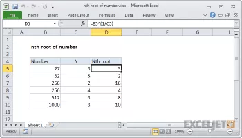 In mathematics, an nth root of a number x, where n is usually assumed to be a positive integer, is a number r which, when raised to the power n yields x: where n is the degree of the root. A root of degree 2 is called a square root and a root of degree 3, a cube root.