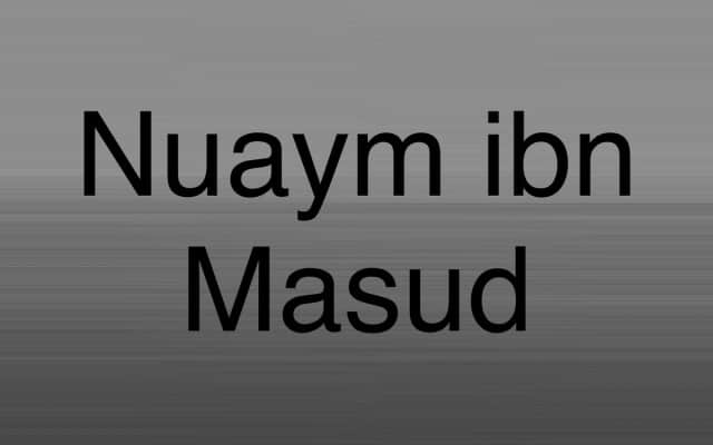 Nuaym ibn Masud al-Ghatafani was a companion of Muhammad hailing from Najd in the northern highlands of Arabia, belonging to the powerful Ghatafan tribe. His first exposure to the Muhammad was when Abu Sufyan sent him to Medina to convince the Muslims to not fight the Qurayshi army by exaggerating their numbers.