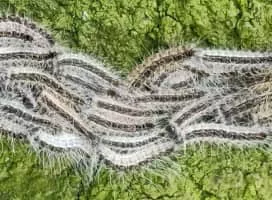 The oak processionary is a moth whose caterpillars can be found in oak forests, where they feed on oak leaves, causing significant damage. They travel in nose-to-tail processions, often arrow-headed, with a leader followed by rows of several caterpillars abreast.