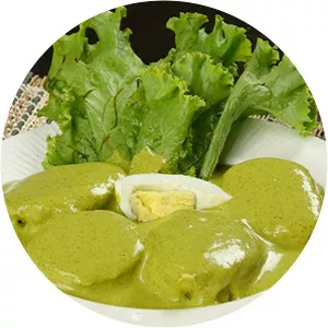 Ocopa in Peruvian cuisine is a smooth sauce made from huacatay, originally from the city of Arequipa, that may be served hot, as dressing for boiled potatoes, or may garnish cold hard-boiled eggs. Ocopa is prepared with sun-dried yellow chilis and chopped onions and thickened with cracker meal.