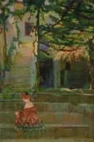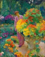 Octave Denis Victor Guillonnet was a French painter and medallic artist. His selected works include Portrait of his wife Emile in their garden A lazy afternoon Au jardin Le Retour du Troupeau Les Baigneuses, Ce d'Azur Garden party Stillife with Yellow Roses and Parrot