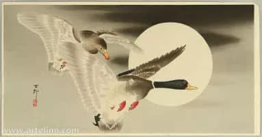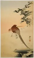 Ohara Koson was a Japanese painter and woodblock print designer of the late 19th and early 20th centuries, at the forefront of shinsaku-hanga and shin-hanga art movements. Ohara Koson was famous as a master of kachō-e designs.