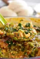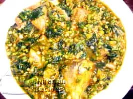 Okra soup is prepared using the edible green seed pods of the okra flowering plant as a primary ingredient. It is greenish in colour. Okra has a slippery feel when rubbed with the fingers. The edible green seed pods can also be used in stews.