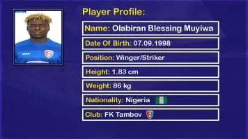 Olabiran Blessing Muyiwa, known as Benito, is a Nigerian professional footballer who plays for HNK Gorica on loan from Dynamo Kyiv.