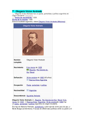 Olegario Víctor Andrade was an Argentine journalist, poet and politician, who was born in Brazil. His daughter, Agustina Andrade, was also a poet.