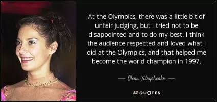 Olena Ihorivna Vitrychenko, also known as Elena Vitrichenko, is an Individual Ukrainian Rhythmic Gymnast. She is the 1996 Olympics bronze medalist, the 1997 World All-around champion and 1997 European All-around champion.