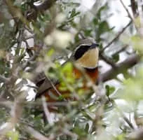 The olive-crowned crescentchest is a species of bird in the Melanopareiidae family. It is found in Argentina, Bolivia and Paraguay. Its natural habitats are subtropical or tropical dry forests, subtropical or tropical dry shrubland and subtropical or tropical high-altitude shrubland.