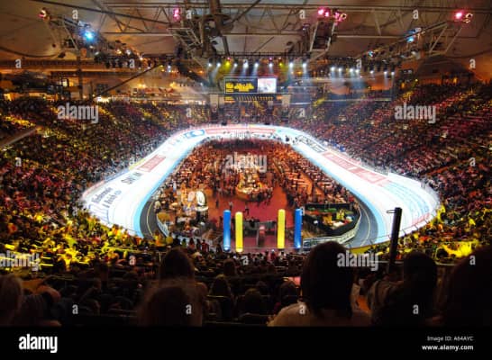 Olympiahalle is a multi-purpose arena located in Am Riesenfeld in Munich, Germany, part of Olympiapark. The arena is used for concerts, sporting events, exhibitions or trade fairs. The official seating capacity for the arena varies from some 12,500 to 15,500.