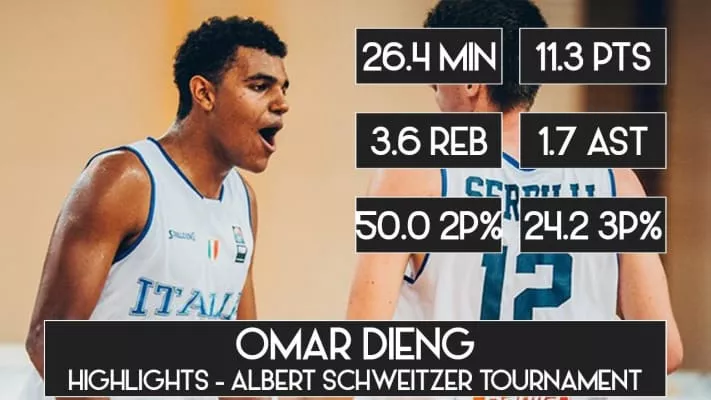 Omar Dieng is a basketball player born on February 17, 2000. His height is six foot eight (2m02 / 6-8). He is a power forward who most recently played for Real Sebastiani Rieti in Italy - Serie B Girone D Play-OFF.2m02 / 6-8