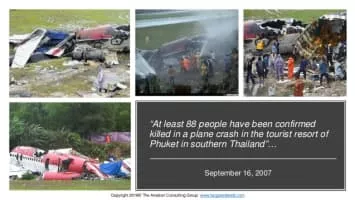 One-Two-GO Airlines Flight 269, a McDonnell Douglas MD-82, crashed into an embankment beside runway 27 at Phuket International Airport bursting into flames upon impact on 16 September 2007, about 15:41 ICT during an attempted go-around after an aborted landing, killing 89 of the 130 persons on board.