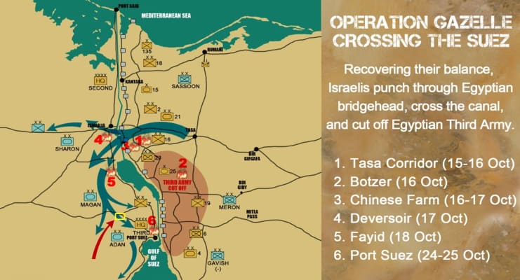 Operation Abirey-Halev or Operation Abirey-Lev also known as Operation Stouthearted Men and Operation Valiant, code-named Operation Gazelle, was an Israeli operation that took place in the center of the Suez Canal on 15–23 October 1973 during the Yom Kippur War.
