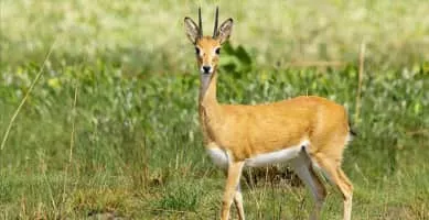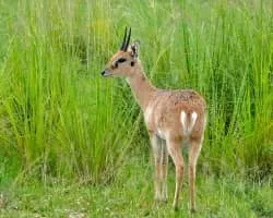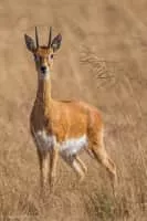The oribi is a small antelope found in eastern, southern and western Africa. The sole member of its genus, the oribi was first described by the German zoologist Eberhard August Wilhelm von Zimmermann in 1782. Eight subspecies are identified.