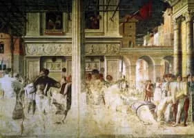 The Ovetari Chapel is a chapel in the right arm of the Church of the Eremitani in Padua. It is renowned for a Renaissance fresco cycle by Andrea Mantegna and others, painted from 1448 to 1457.