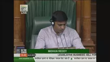 P.V. Midhun Reddy / Peddireddy. Venkata Midhun Reddy is an Indian politician who is the current Member of Parliament in the 16th Lok Sabha and 17th Lok Sabha from Rajampet constituency. He acts as the panel speaker of Lok Sabha representing the YSR Congress Party and YSR Congress Party Lok Sabha floor leader.