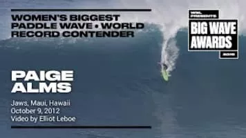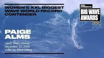 Paige Alms is a female Hawaiian big wave surfer. In 2016, she became the first female Big Wave champion.