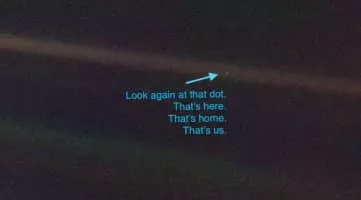 Pale Blue Dot is a photograph of planet Earth taken on February 14, 1990, by the Voyager 1 space probe from a record distance of about 6 billion kilometers, as part of that day's Family Portrait series of images of the Solar System.