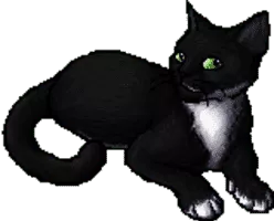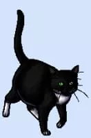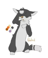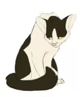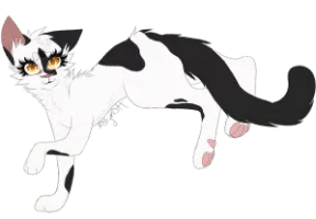 alebird is a thin, soft-furred, black-and-white she-cat.